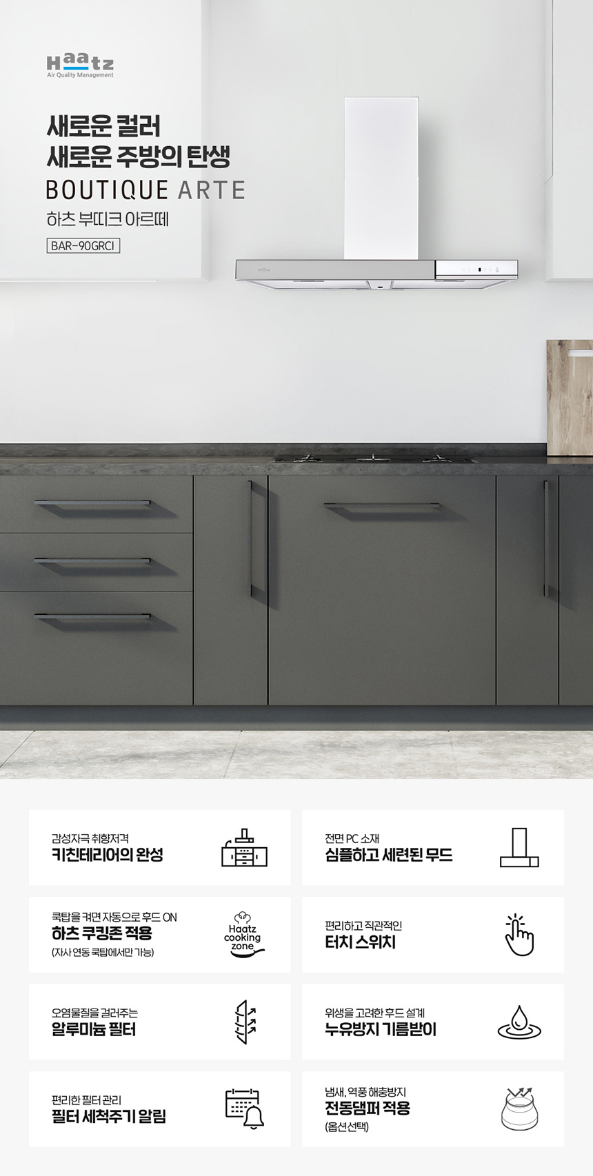 [하츠] 부띠끄 아르떼 주방후드 (버터 옐로우) + 부띠크 인덕션